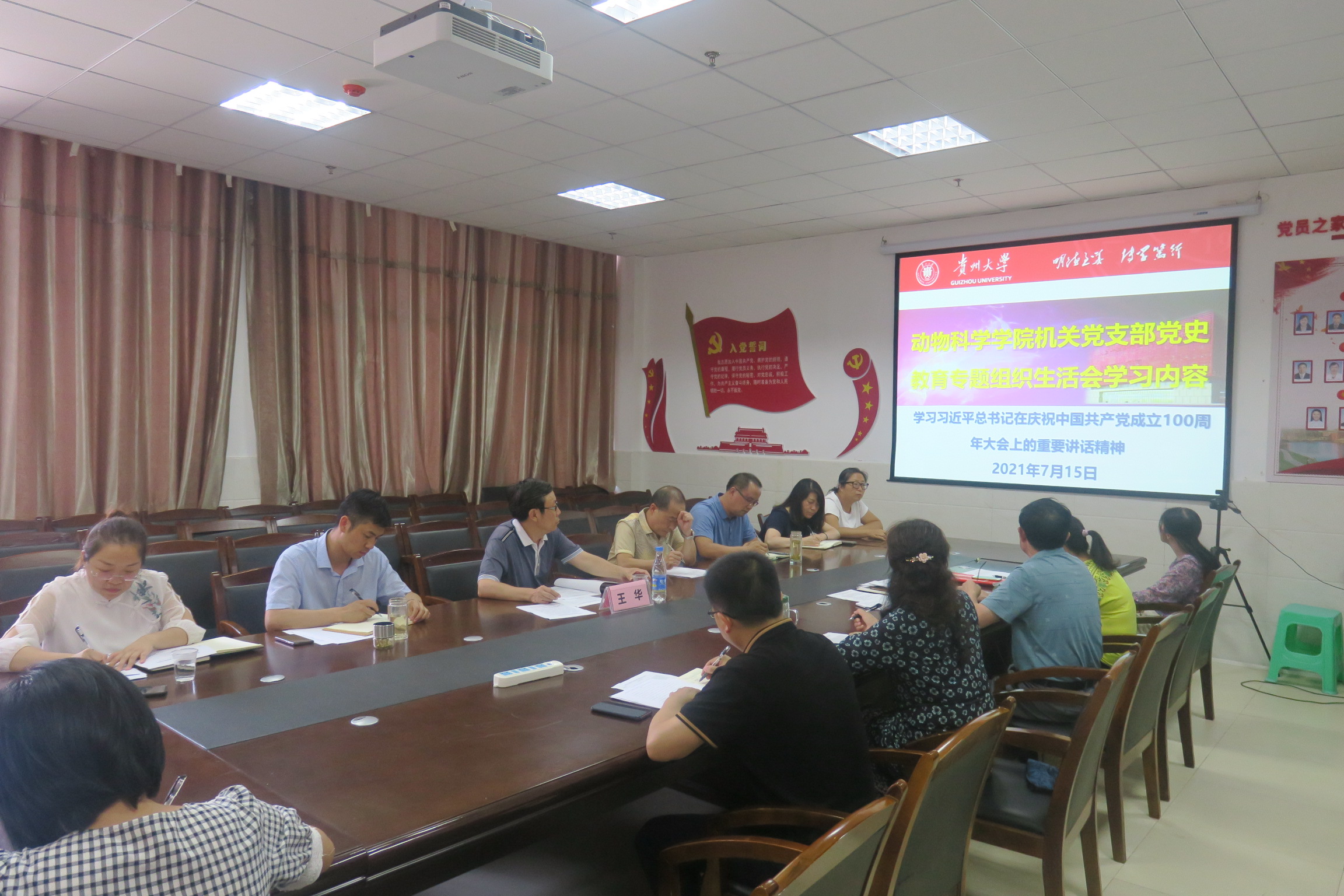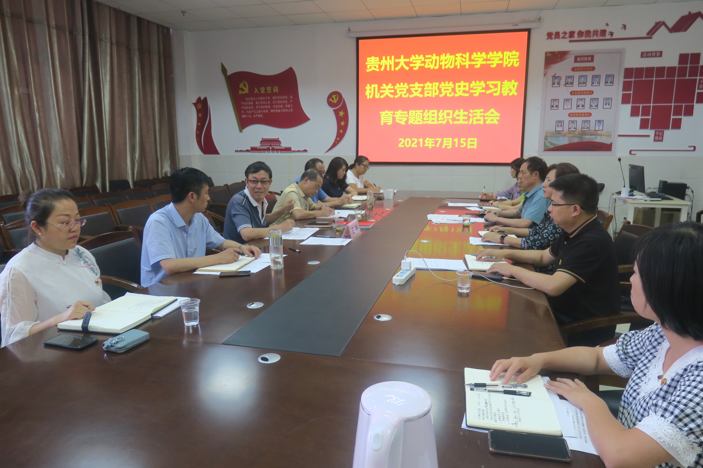 按照贵大党史教育办的统一安排部署,2021年7月15日下午,英国威廉希尔唯一官网机关党支部在崇学楼206会议室召开了“学党史、悟思想、办实事、开新局”为主题的党史学习教育专题组织生活会。机关党支部全体党员同志到会,学院党员领导干部以普通党员身份参会,学院副院长欧德渊列席会议,学校第三巡回指导组组长、正处级组织员王华同志莅临指导。组织生活会由机关党支部书记肖超能同志主持。