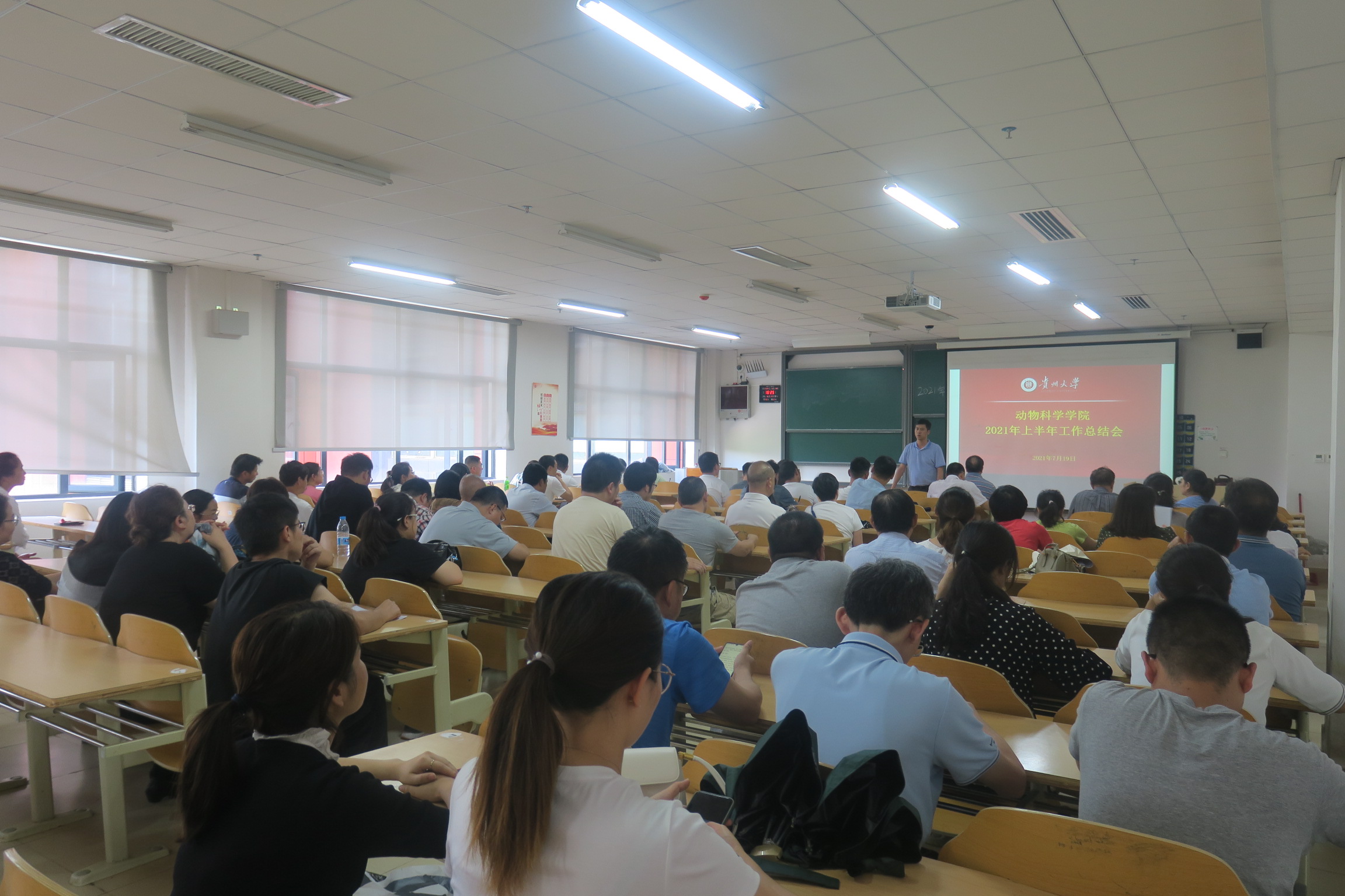 2021年7月19日下午,英国威廉希尔官网在西区明俊楼314D召开全院教职工大会,学院党政领导及全院教职员工110余人加了会议。会上,学院开展了政治理论学习,党政领导传达了学校2021年上半年工作总结会议上校领导的讲话精神,对2021年的上半年工作情况进行了总结,并对疫情防控工作、暑期有关工作进行了安排部署。会议由学院党委书记罗聃宁主持。