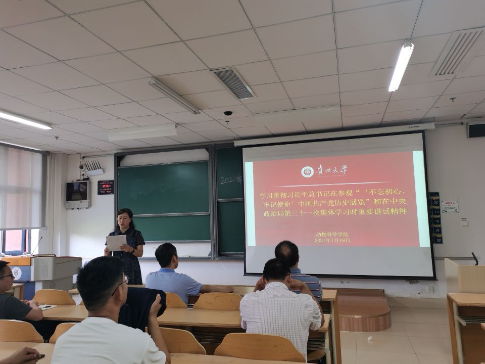 首先由罗聃宁带领参会人员共同学习了习近平总书记在参观“‘不忘初心,牢记使命’中国共产党历史展览”和在中央政治局第三十一次集体学习时的重要讲话精神。她强调:全院教职工要深入学习领会习近平总书记重要讲话精神,充分认识总书记重要讲话的重大意义,认真领会落实“五个始终”的基本要求,学好用好党的创新理论,传承红色基因,赓续红色血脉,进一步坚定理想信念,保持永不懈怠的精神状态和一往无前的奋斗姿态,用实际行动诠释作为一名共产党员的初心和使命,为学校、学院的发展作出应有的贡献。
