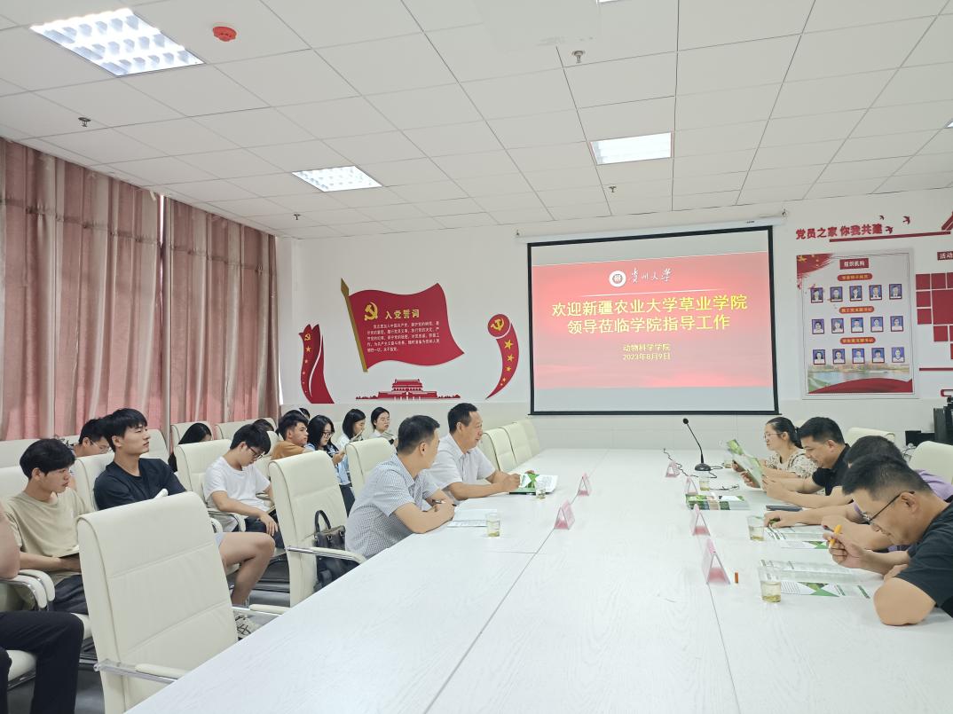 陈超对新疆农业大学草业学院领导赴英国威廉希尔官网开展指导工作表达了诚挚谢意,向新任的领导班子问好,并希望双方发挥各自优势,加强合作,通过开展教师交流培训、联合培养学生、科研项目合作等举措提高双方的科研水平、创新意识与创新能力,推进科研合作新局面,促进共同发展。