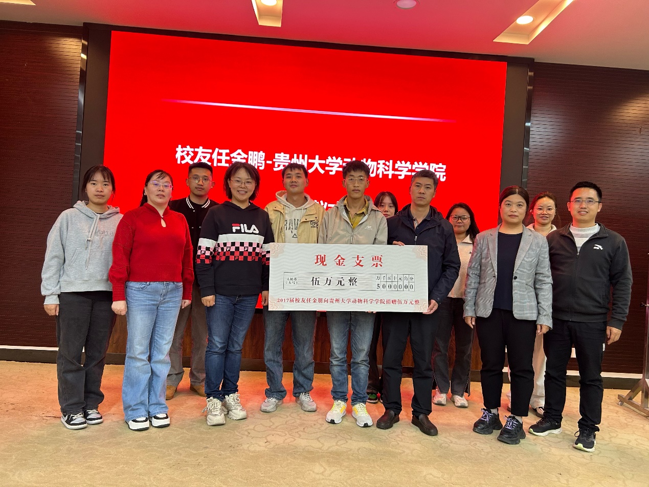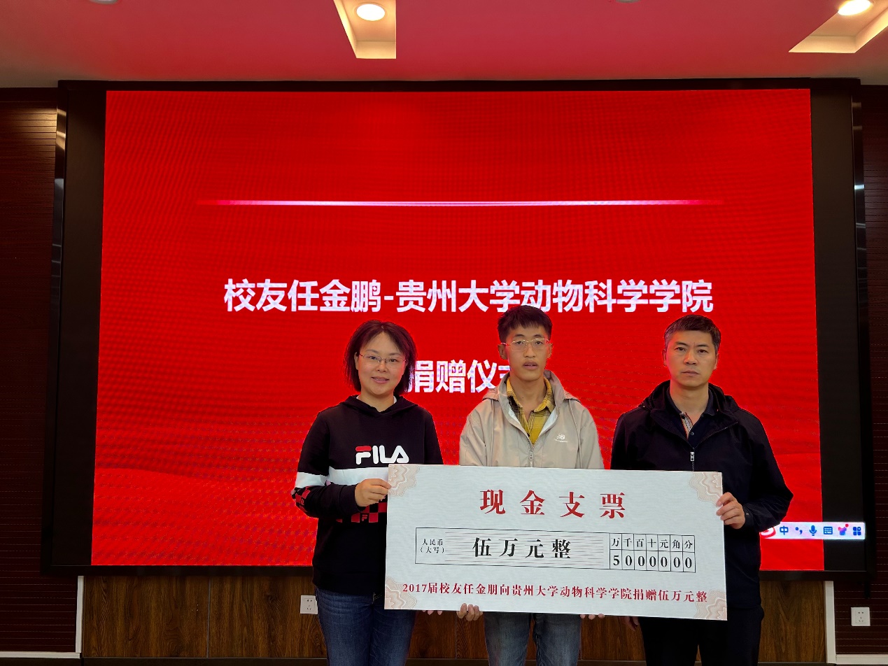 10月12日,英国威廉希尔唯一官网2017届校友任金朋向学院捐赠五万元资金,捐赠仪式在崇学楼324会议室进行。学院党委副书记杨乐、副院长陈祥、动科系支部书记徐娥、考研室主任李辉及研究生等代表参加了捐赠仪式,仪式由杨乐主持。