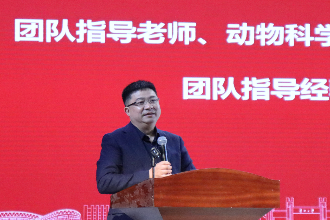 首先,杨乐介绍了学院在中国国际大学生创新大赛(2024)中的获奖情况,《醉美农情 酒育黔州—酒糟化宝反哺黔山秀水 博士村长接力乡村振兴》、《酱酒酒糟饲料化开发及高效利用》分别斩获项目青年红色筑梦之旅赛道、产业命题赛道金奖。她鼓励同学们勇于探索未知,敢于挑战自我,结合专业特长,在创新创业中增长智慧才干,在艰苦奋斗中锤炼意志品质。