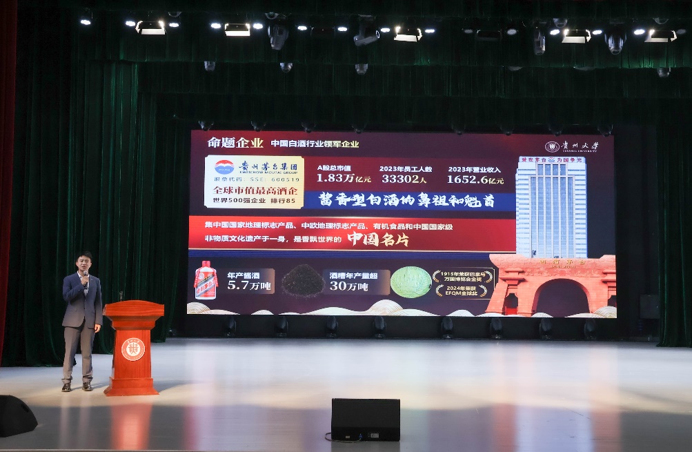 信张弛同学作为团队项目介绍人,向参会师生带来了名为《酱酒酒糟饲料化开发及高效利用》的项目路演,该项目团队由刘馨、那彬彬、李茂雅、洪图、常娜娜、姚文倩、王莉、王雪雪、杨锦玉欣、兰明泽、信张弛、徐晶晶等同学组成,指导老师包括陈超、张勇、金林红、曾素梅、安华明等。