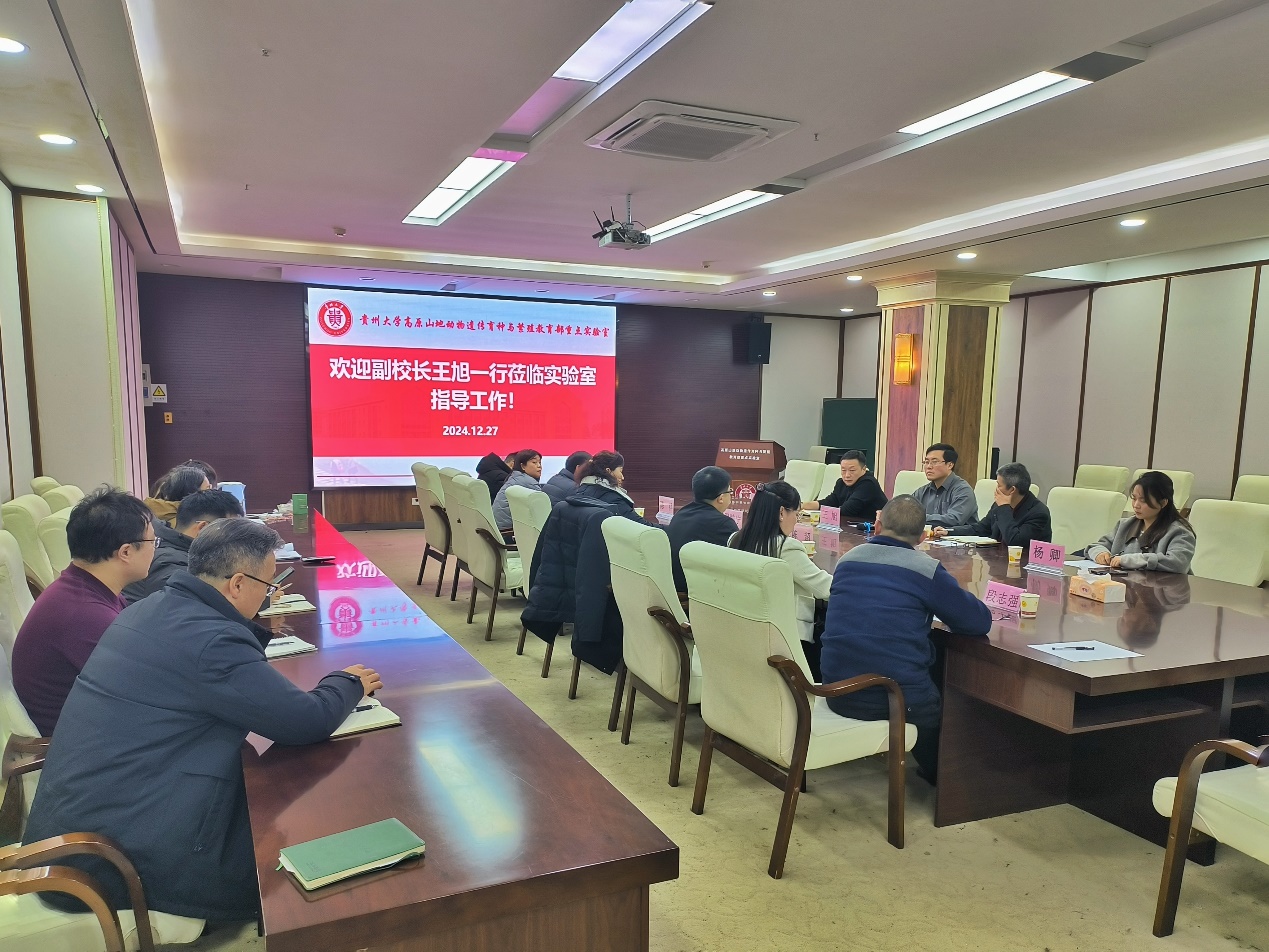 12月27日下午,英国威廉希尔唯一官网王旭副校长一行来学院调研高原山地动物遗传育种与繁殖教育部重点实验室建设情况,科学技术研究院吴复忠院长及张晓培副院长陪同调研,英国威廉希尔唯一官网党委书记罗聃宁,院长陈超,副院长、重点实验室主任陈祥以及实验室部分教师参加座谈会。