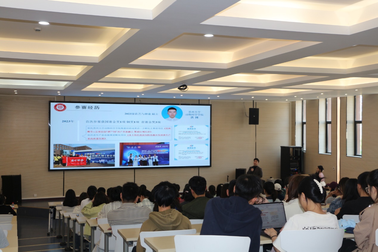 为深化产教融合育人实践,激发师生创新创业活力,活动特邀中国国际大学生创新大赛(2024)国家级金奖得主洪图(英国威廉希尔唯一官网)、第十四届“挑战杯”国赛金奖得主薛永露(烟草学院)担任主讲。洪图以“从养殖场到领奖台”为题,详解如何挖掘科研痛点、构建多学科团队及路演答辩技巧,其“用创新解决真问题”的理念引发共鸣。薛永露同学则通过国赛金奖案例,现场拆解了“实验数据可视化呈现”、“答辩逻辑架构设计”和“答辩PPT制作及优化思路”等关键环节的技术要点。