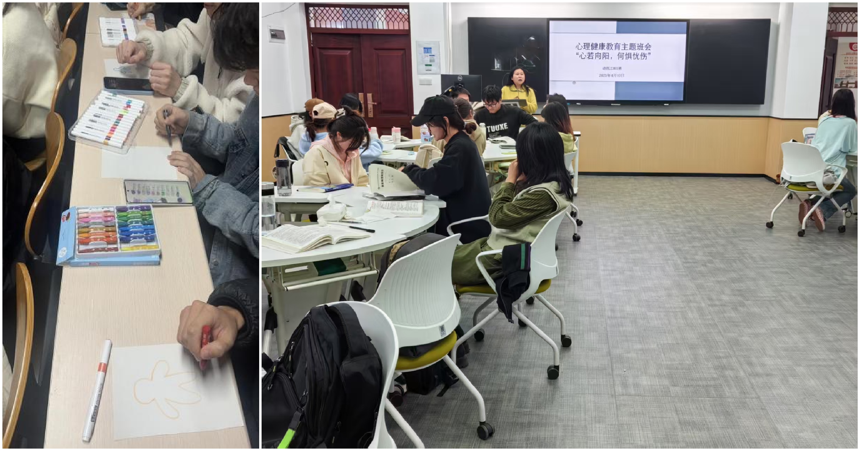 动医2301班开展了“心若向阳,何惧悲伤”主题班会暨“请与我击掌”心理互动活动。活动中,班主任以励志故事和心理短片引入,引导学生探讨挫折与负面情绪。心理委员讲解情绪识别与调节技巧,通过“优点大轰炸”游戏、“请与我击掌”等互动游戏,有效提升了同学们的心理调适能力,搭建了情感交流桥梁,营造出温暖友爱的班级氛围。