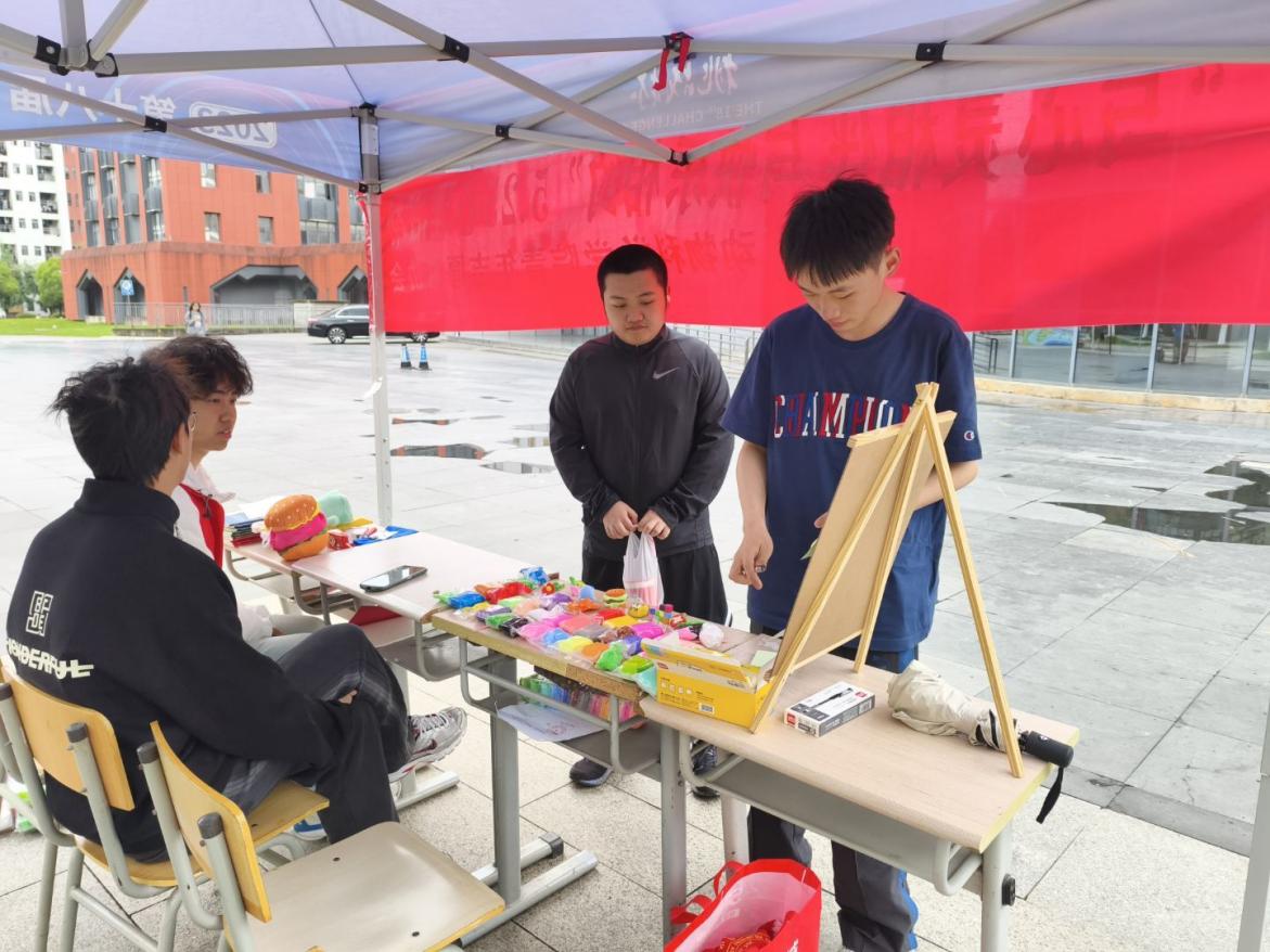 在“捏出轻愈时光”区域,工作人员贴心地为同学们准备了多种颜色的黏土,以及滚轮、模具、刻刀等工具。同学们充分发挥想象力与创造力,用不同方式借助黏土释放压力、表达情感。有的同学将黏土捏成抽象形状来展现内心复杂情绪;有的同学把压力具象化,比如将“最近的烦恼”捏成丑化、扭曲的造型,以诙谐方式与烦恼告别;还有同学精心塑造 “理想中的自己”,用黏土勾勒出对未来的美好憧憬。完成作品的同学都能获得小贴纸奖励,大家在轻松创作中舒缓了压力,放松了心情 。