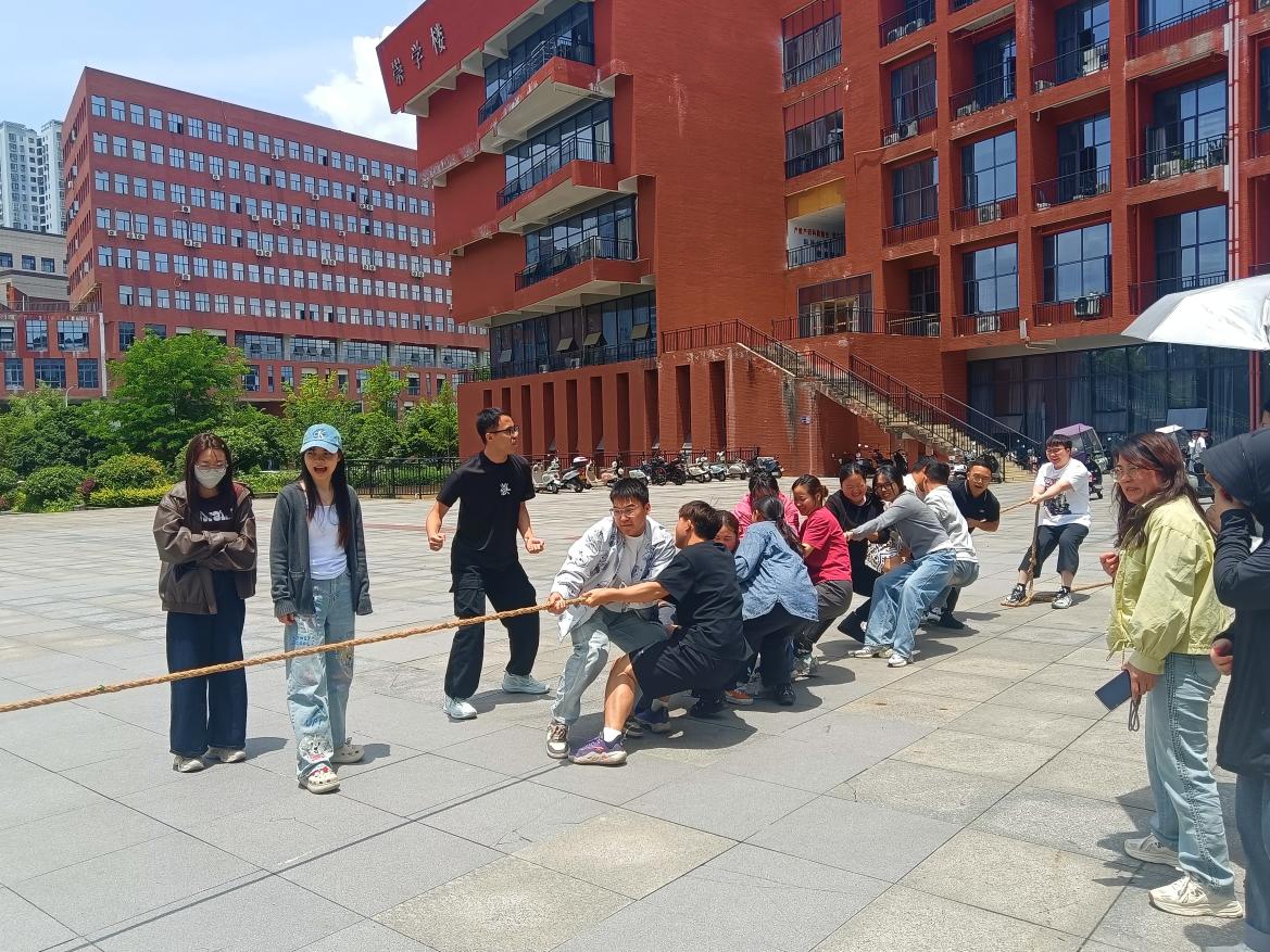 本次拔河比赛采用分组淘汰制,本科生与研究生混合组队,共组成4支队伍参赛。随着裁判一声哨响,比赛正式拉开帷幕。参赛队员们紧握长绳,双脚用力着地,身体后倾,憋足了劲拼命往后拉。现场的同学们热情高涨,为各自支持的队伍加油助威,加油声、呐喊声响彻整个赛场,将比赛推向高潮。