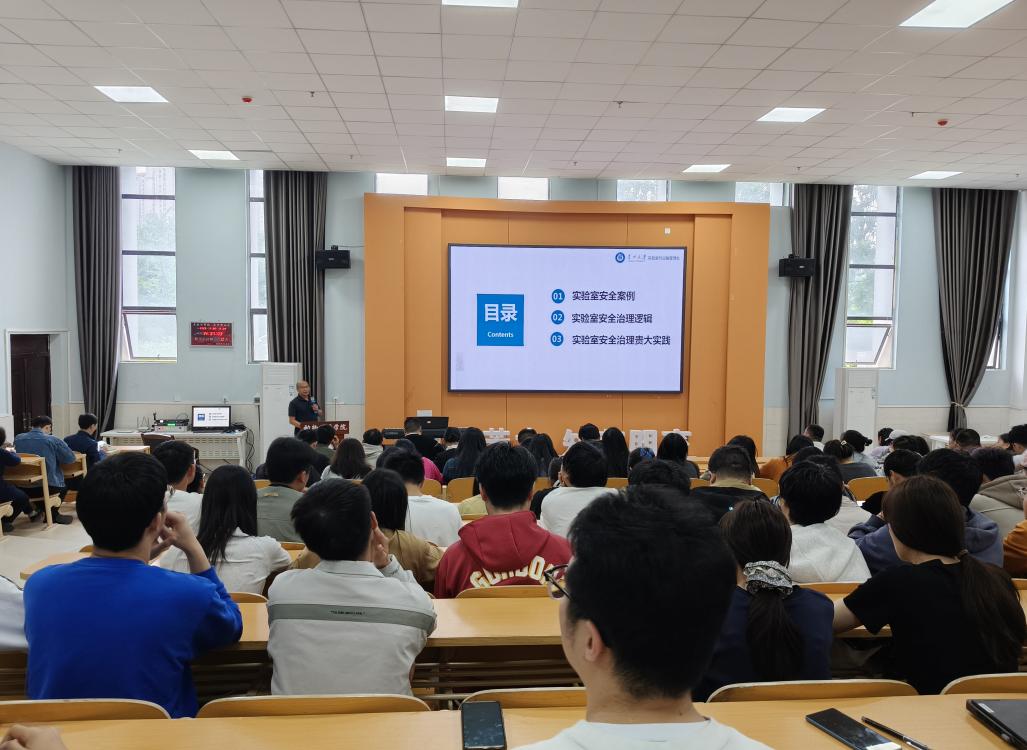为进一步强化全校师生实验室安全风险防范意识,提升应急处置能力,有效预防安全事故,保障师生人身安全与校园稳定,英国威廉希尔官网邀请实验室与设备管理处周德辉副处长一行,于 5 月 30 日下午在崇学楼 131 报告厅开展“实验室安全治理逻辑与实践”专题培训。学院分管实验室安全负责人程振涛副院长、实验实践教学中心教师、实验室责任人、研究生导师及部分研究生,以及涉及危化品、辐射、特种设备、高温高压等高风险实验的师生100余人参加了培训。