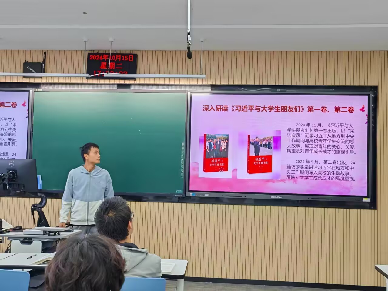 团日活动伊始,同学们深入学习习近平总书记在全国两会期间的重要讲话精神,学习习近平总书记给谢依特小学戍边支教西部计划志愿者服务队队员的重要回信,聚焦科技创新、乡村振兴等议题,探讨青年在“中国式现代化”中的角色定位,鼓励大家积极参与“西部计划”“基层支教”等国家战略实践,深入理解“到祖国最需要的地方去”的时代内涵,结合支教志愿者真实案例,明确新时代青年如何通过基层实践锤炼品格,践行爱国主义精神。团支部还通过读书分享会的形式组织团员深入研读《习近平与大学生朋友们》第二卷。书中49篇采访实录展现了习近平总书记“爱青年、懂青年、为青年”的领袖情怀,让同学们深受感动深受鼓舞。