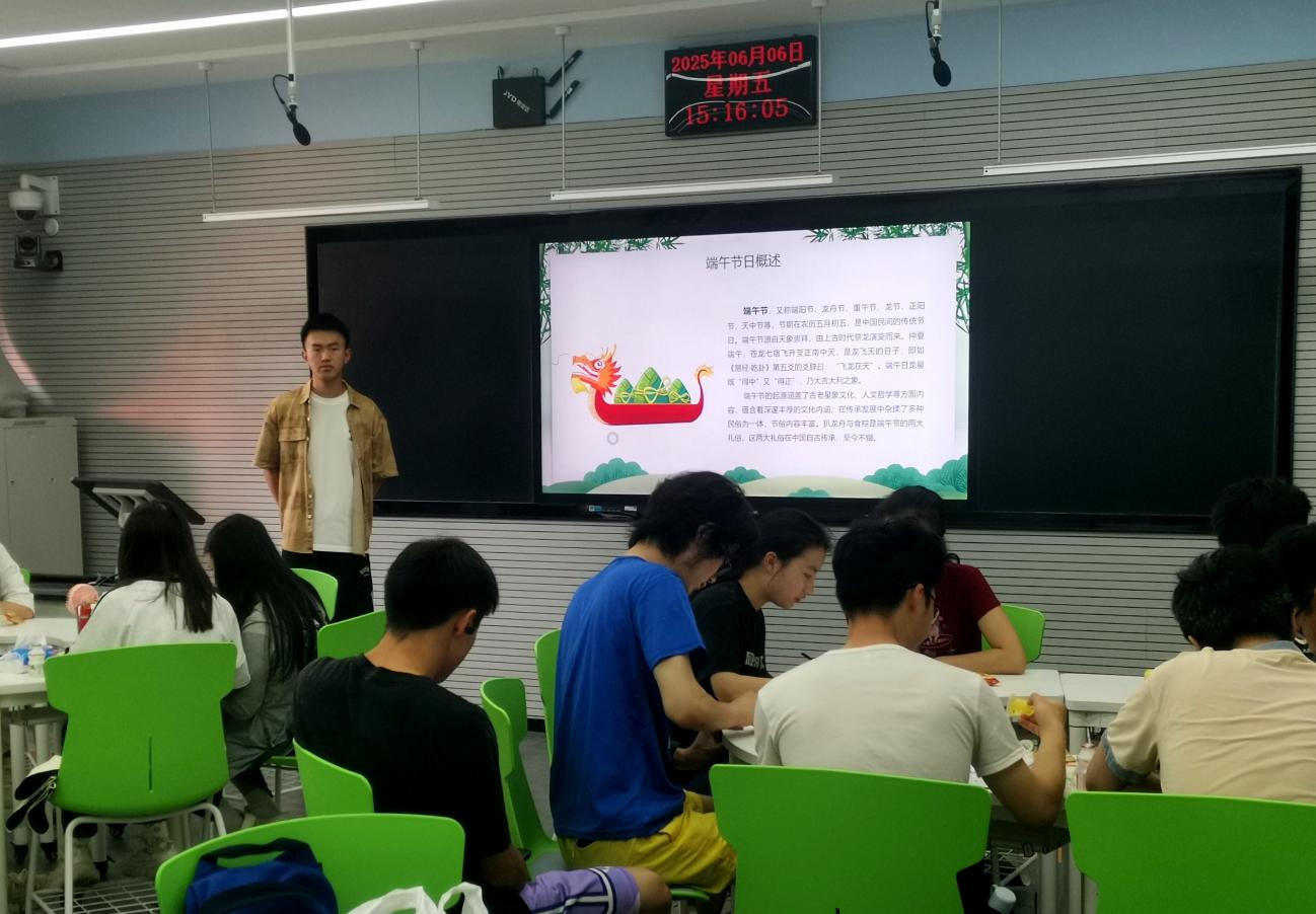 活动最后,团支部以端午节为契机,深入挖掘端午节的民俗文化内涵。通过端午节知识宣讲、朗诵端午诗律《五月五日》和海报展览的形式,引导团员青年感受中华民族悠久的历史传统和独特的文化魅力,坚定同学们的文化自信。