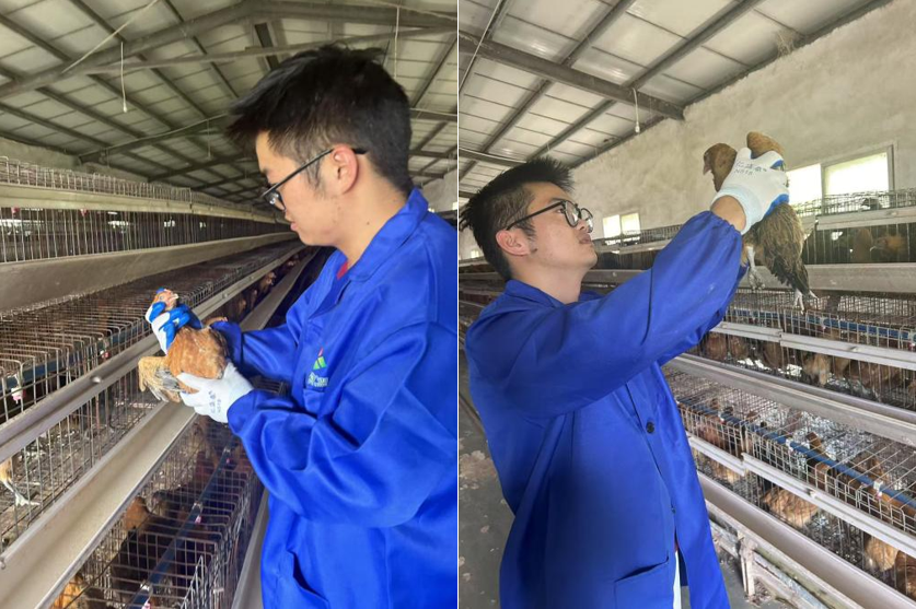 驻场学生团队已行动起来,在 4 号鸡舍开展鸡群健康巡查,细致观察鸡的状态,记录信息,对发现的鸡粪稀溏、通风不畅等问题及时标记采样,为后续工作收集第一手数据。